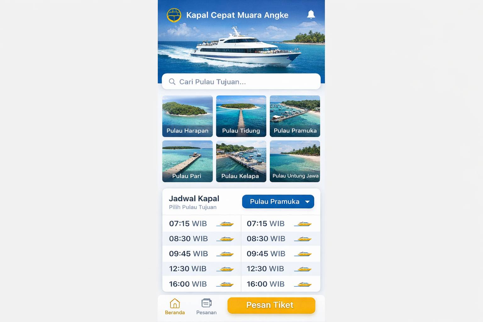 - Pilih tujuan pulau dan tanggal keberangkatan