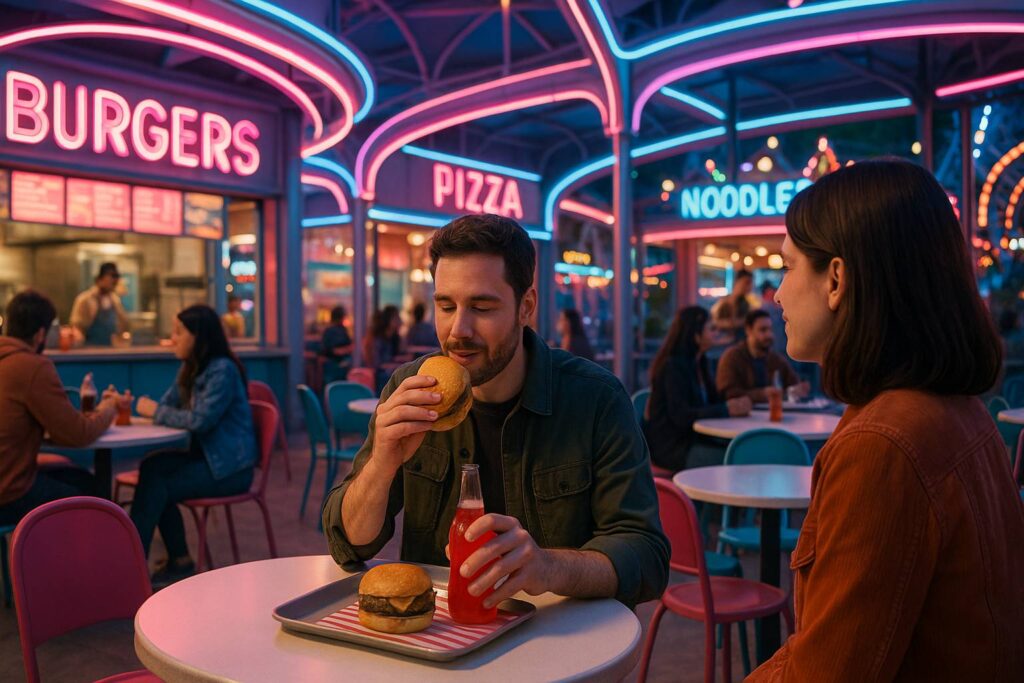 Trans Studio Cibubur unggul di sini. Mereka punya Studio Central Dining yang konsepnya food hall modern. Ada Warung SS (bukan nama sebenarnya tapi konsepnya upscale Indonesian food), Burger & Co. dengan craft burger, dan kafe kopi yang bener-bakar buat konten. Area duduknya nyaman, banyak spot dengan meja tinggi dan sofa—designed for adults to hang.