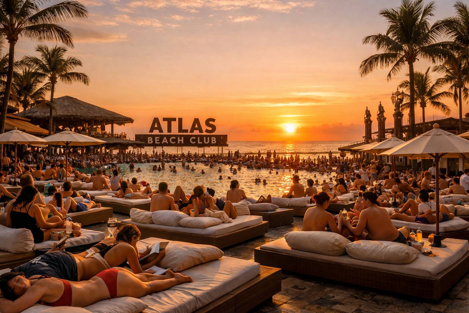 Atlas Beach Club nggak cuma soal pantai. Ini soal entertainment, lifestyle, dan experience. Kamu bayar buat konveniensi: nggak perlu ribet cari tempat duduk, makanan, atau hiburan. Semua udah disediain dalam satu gerbang.
