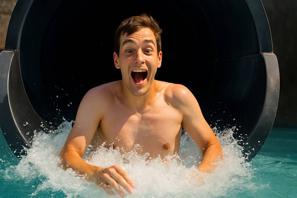 Atlantis punya Crazy Atlantis—boomerang slide setinggi 25 meter yang lempar kamu kayak sapu lidi. Atlantis Tower juga punya drop slide serupa. Tapi sensasinya sedikit berbeda: Atlantis lebih “brutal”, Waterbom lebih “smooth” dalam eksekusi.